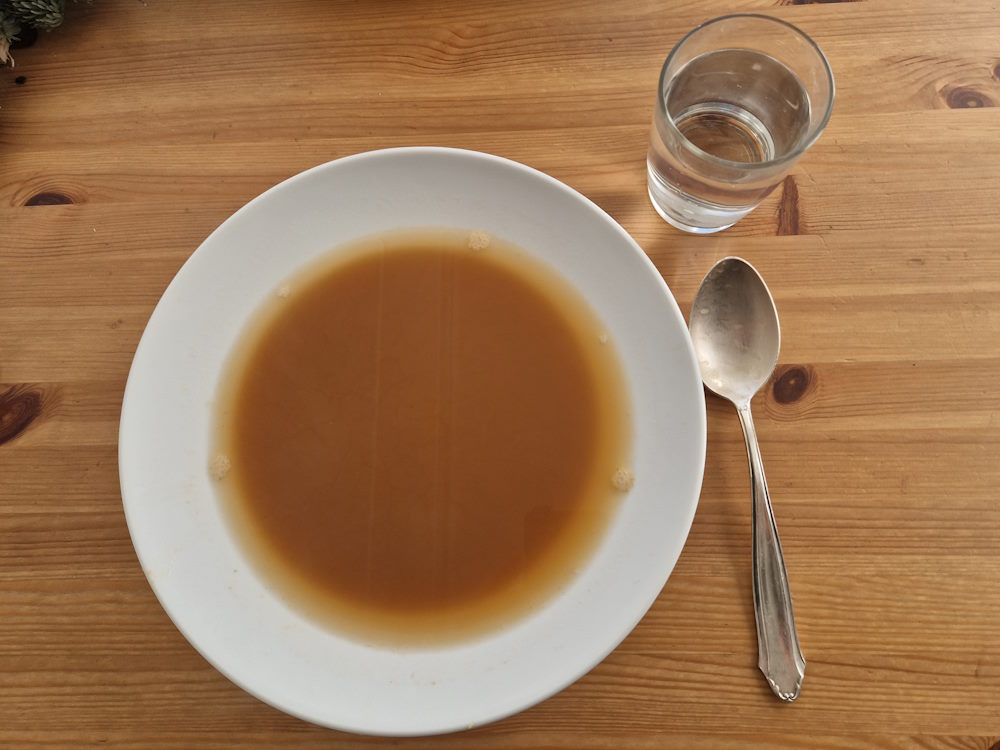 Meine Grossmütter haben unter Lebensgefahr Kartoffeln und Steckrüben klauen müssen. Meine Grossväter haben in der Gefangenschaft Gras gegessen und ihren Urin getrunken. Da kann ich locker für ein paar Tage den faden Geschmack im Mund ertragen.